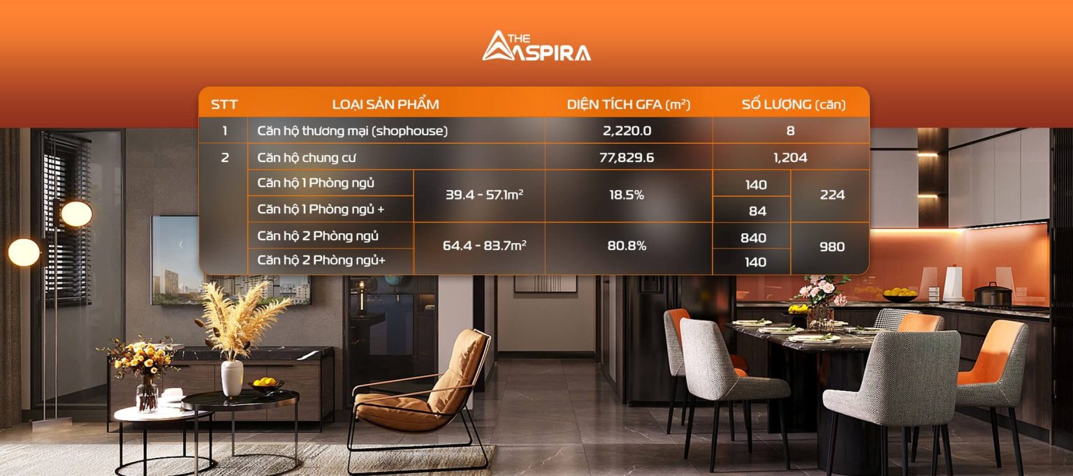 Mang trong mình dấu ấn tiên phong, đại diện cho sự vươn mình mạnh mẽ, biểu tượng của khát vọng thành công, The Aspira khai mở một hành trình sống tràn đầy năng lượng. Nơi mỗi căn hộ là một tuyên ngôn sống đậm dấu ấn cá nhân, tự do định hình phong cách sống, đánh dấu những cột mốc quan trọng và viết tiếp hành trình thành công của riêng mình.